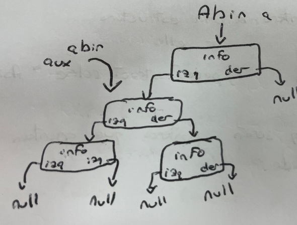 - Si acabamos de crear el árbol y está vacío, creamos el nodo con un Abin aux reservando memoria y apuntamos Abin a este nuevo nodo.