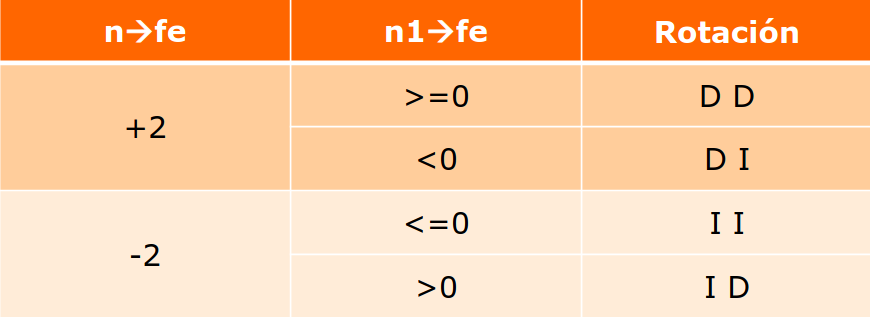 4 tipos de rotaciones, I-> Izquierda D-> Derecha: