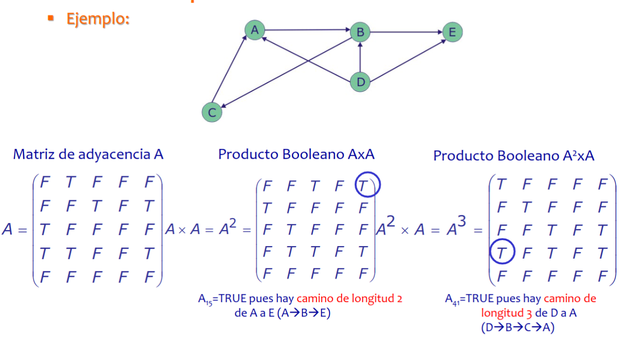 - En un grafo fuertemente conexo, todas las entradas de la matriz de caminos tienen un 1 excepto la diagonal principal.