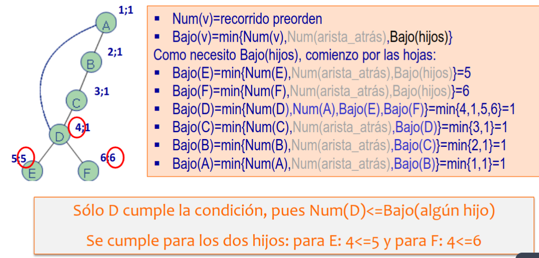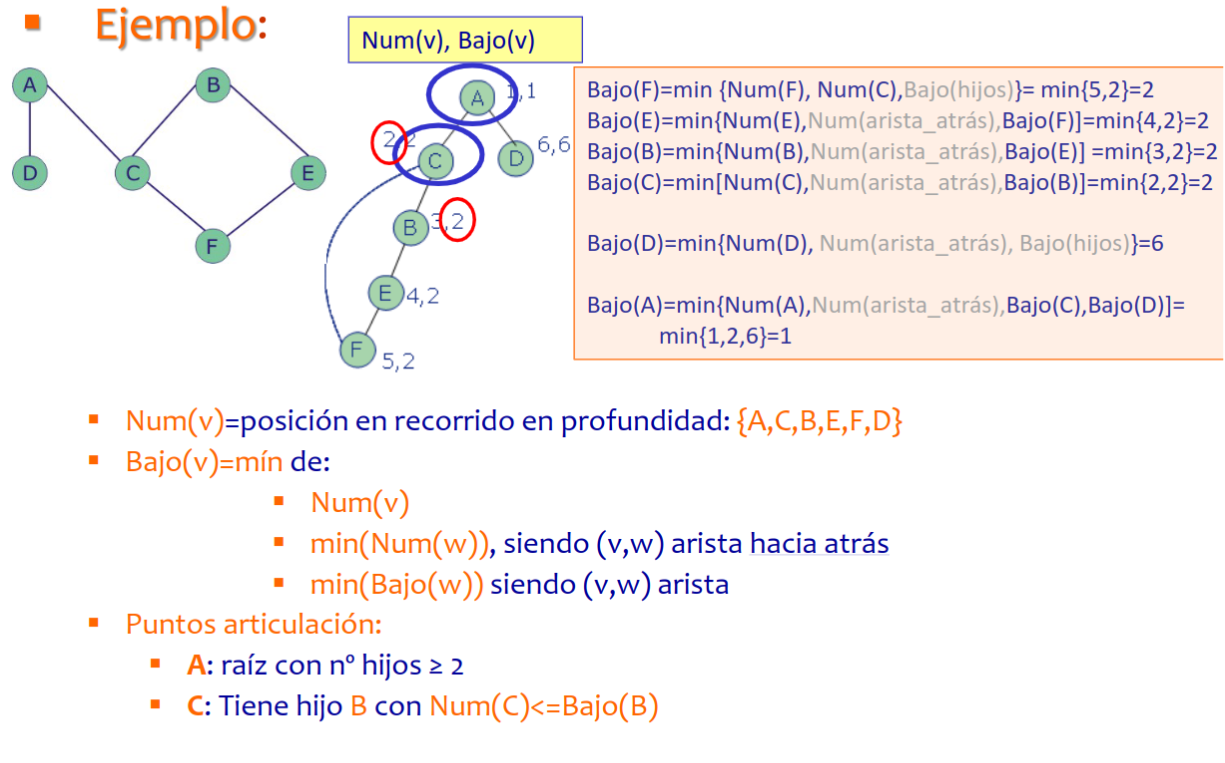 Sección titulada «Algoritmo para encontrar puntos de articulación»- Se realiza un recorrido en profundidad, numerando los nodos.