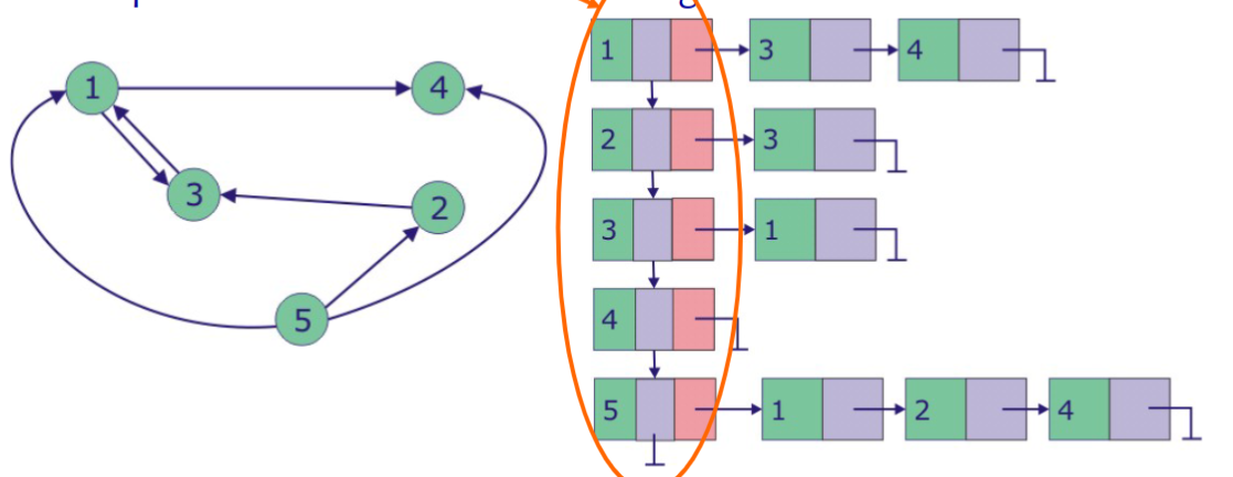 Sección titulada «Lista de adyacencia»- Cada nodo tiene asociada una lista enlazada que contiene los nodos con los que es adyacente.