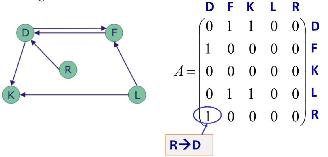 Sección titulada «Matriz de adyacencia»- Es una matriz cuadrada de tamaño , donde es el número de nodos.