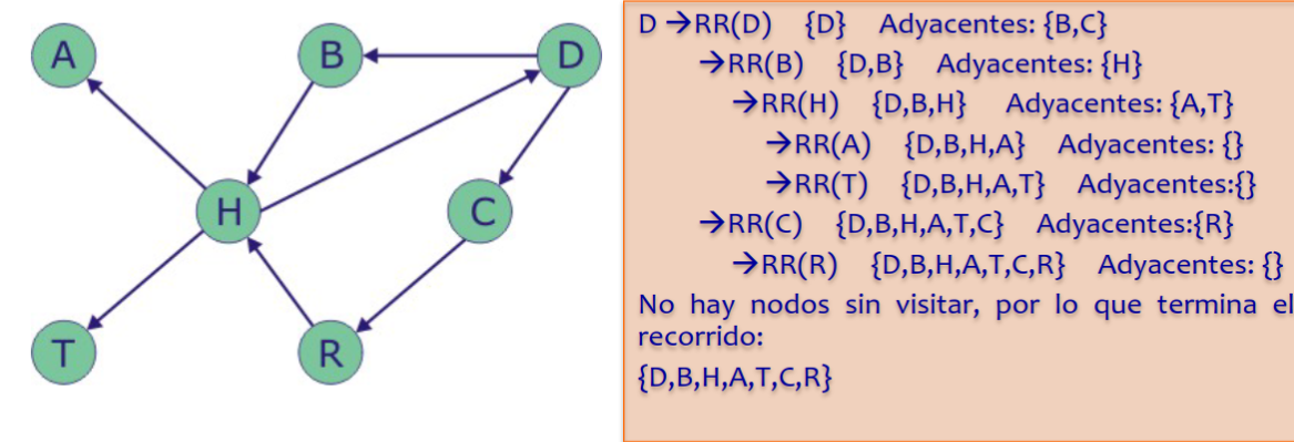 - Puede implementarse de manera recursiva o utilizando una pila como estructura auxiliar.