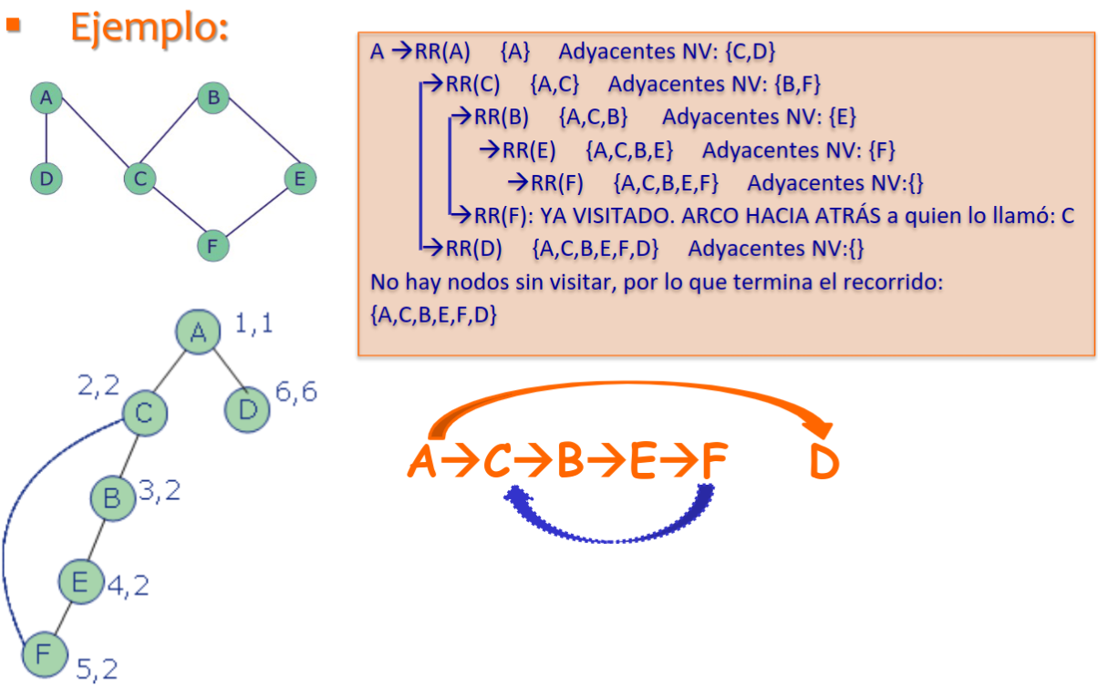 - Si no, los vértices visitados forman una componente conexa. Se repite el proceso con un vértice no visitado.