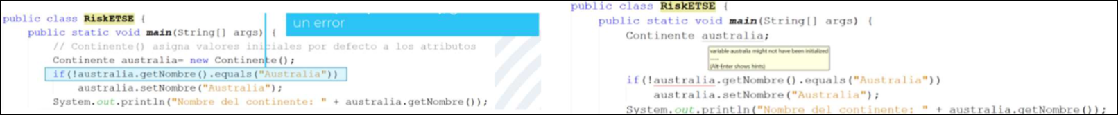 Si se intentase usar el atributo en este estado, se generaría un error de ejecución NullPointerExecption. Se debe reservar memoria para él invocando a los constructores con el operador new.