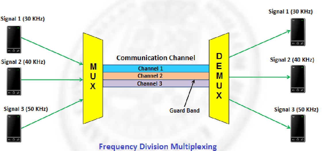 Por un mismo enlace se pueden enviar varias transmisiones si modulamos a una frecuencia distinta cada una de ellas. Por ejemplo las transmisiones por radio. En los receptores, las distintas frecuencias se pueden separar mediante filtros: