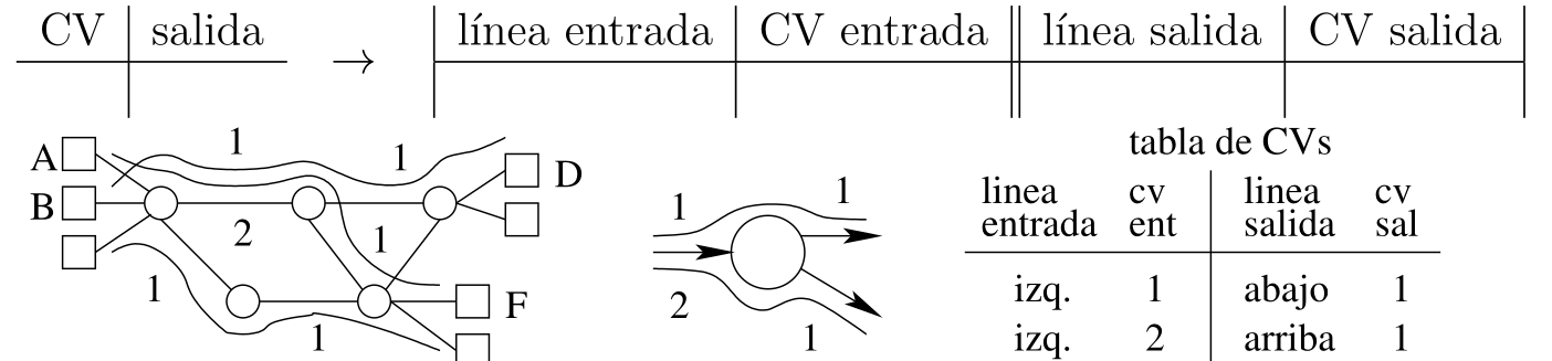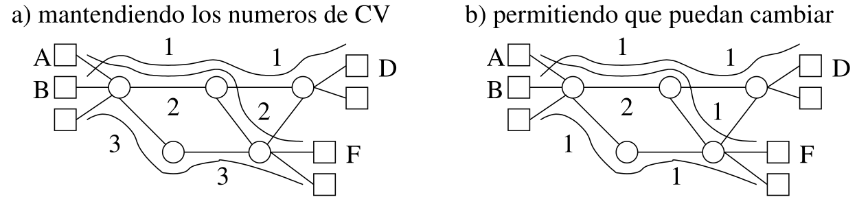 El número de circuito virtual puede cambiar de una enlace a otro, lo que permite reutilizar números de circuitos virtuales en diferentes enlaces, lo que ahorra espacio en las cabeceras de los paquetes y nos evita tener que mantener una tabla global con todos los circuitos virtuales de la red. Cada routes solo necesita saber qué números de circuito son válidos en los enlaces locales.