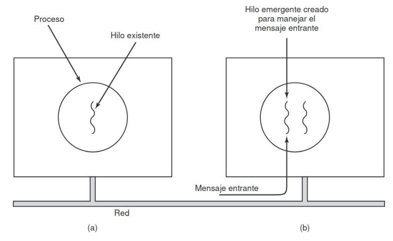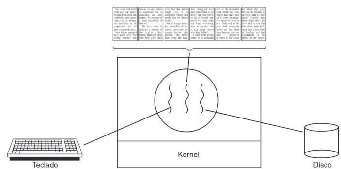 el primer proceso, que ejecuta cat, concatena tres archivos y los envía como salida. El segundo proceso, que ejecuta grep, selecciona todas las líneas que contengan la palabra “arbol”. Dependiendo de la velocidad relativa de los dos procesos (que dependen tanto de la complejidad relativa de los programas, como de cuánto tiempo ha tenido cada uno la CPU), puede ocurrir que grep esté listo para ejecutarse, pero que no haya una entrada esperándolo. Entonces debe bloquear hasta que haya una entrada disponible.