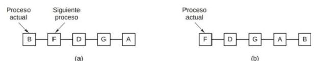 Cuando el proceso actual pierda la CPU se escogerá como nuevo proceso al primero de la lista, y el actual se pondrá al fina. Es muy fácil de implementar mediante una lista enlazada de