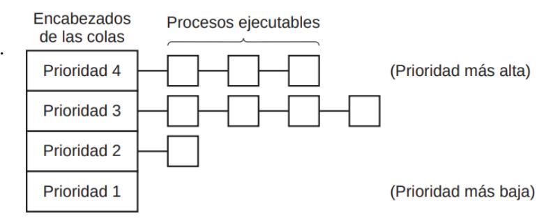 Se agrupan los procesos en colas de prioridad y se usa planificación por prioridad entre clases, o planificación round robin dentro de cada clase.