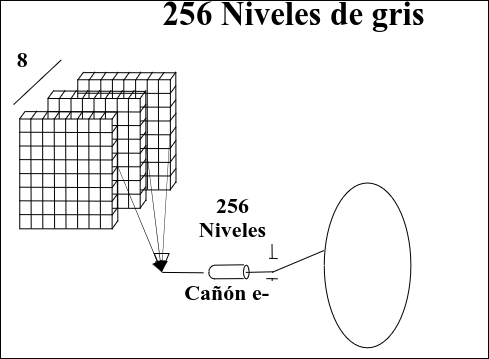 Sección titulada «1.2.2 Terminales Raster»Terminales raster: TRC en el que el haz de recorre la pantalla por líneas (625 lineas), desde la parte superior izquierda a la inferior derecha. Los datos mostrados por pantalla se extrapolan a una matriz bidimensional en la que cada entrada es un Píxel, intersección entre fila y columna.