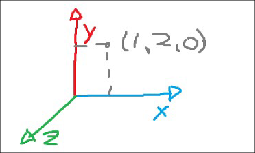 Sección titulada «2.2 Ejes, Puntos y Vectores»Tanto los puntos, como los vectores y los objetos, se representarán sobre los tres ejes cartesianos.