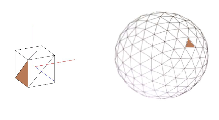 Sección titulada «2.3 Triangulación»Para modelar cualquier objeto se emplea la técnica de teselación, que consiste en su representación mediante polígonos. Por lo general, se suele usar el triángulo, por lo que se llama triangulación.