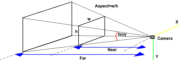 El Frustrum es el volumen de visión de la cámara, es decir, el área del espacio que la cámara verá. Por defecto, el frustrum es [-1,1],[-1,1]. Este rango corresponde al espacio de coordenadas normalizadas.