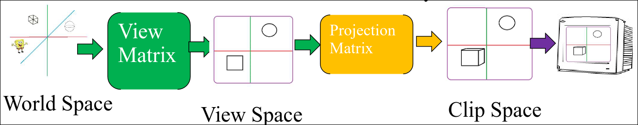 La Projection Matrix permite cambiar las dimensiones del frustrum. Después de aplicar la matriz de proyección se realiza una división perspectiva que convierte las coordenadas del clip space a NCD (normalized device coordinates), diviendo cada componente por el componente homogéneo .