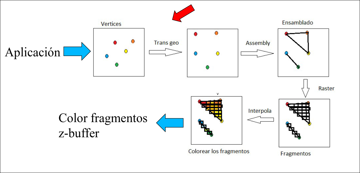 En la pipeline fija (Opengl 1.2) el paso de coordenadas de escena a coordenadas del clip space se corresponde con el paso transformación geométrica.