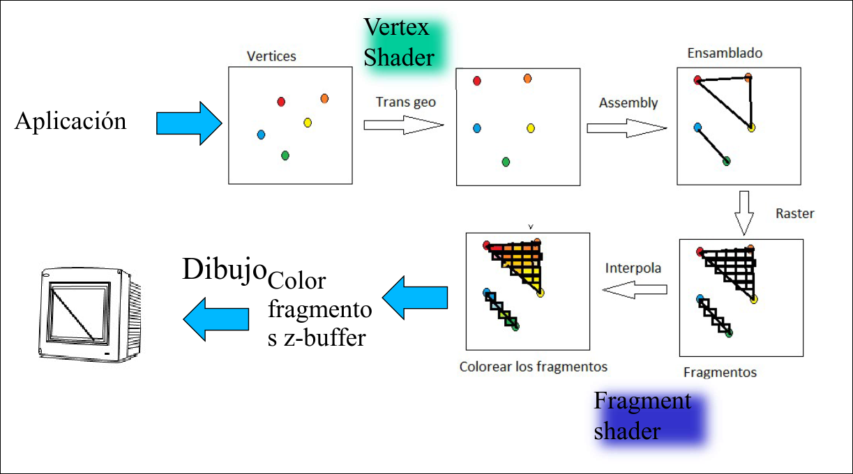 - Z-BUFFER: controla la profundidad de los pixeles para manejar la superposición de objetos en la escena.