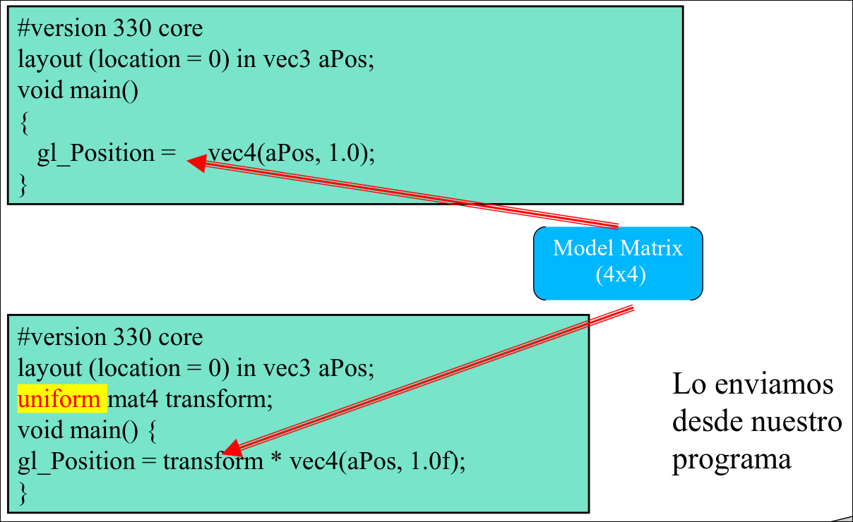 La matriz se envía al VS usando una variable de tipo uniform
