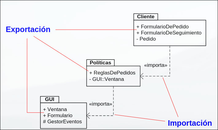 | Paquetes | Organización y dependencias lógicas | Modularizar el sistema |