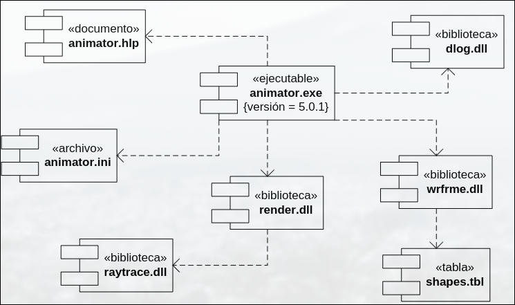 <<executable>>,<<library>>,<<document>>, etc. - Indica relaciones entre interfaces ofrecidas y requeridas.