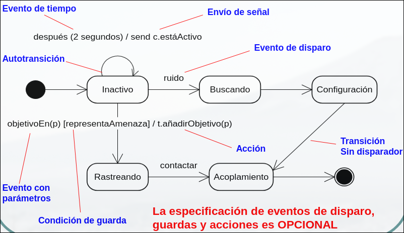 Sección titulada «¿Qué es?»Describe cómo cambia el estado de un objeto a lo largo del tiempo en respuesta a eventos.
