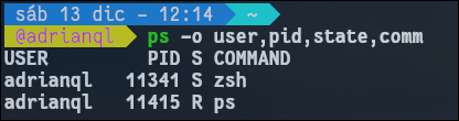Sin opciones, ps sólo muestra los procesos lanzados desde el terminal actual y con el mismo EUID que el usuario que lo lanzó