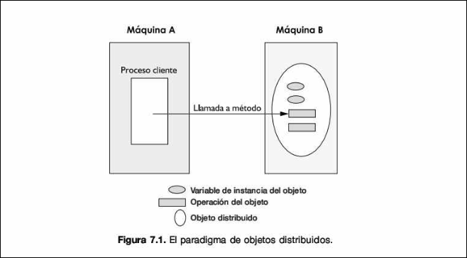 - Objeto Distribuido (Remoto): Es un objeto que reside en una JVM distinta (ya sea en el mismo ordenador o en otro conectado por red). Para invocarlo, el cliente debe utilizar mecanismos de red, ya que no tiene acceso directo a su memoria.
