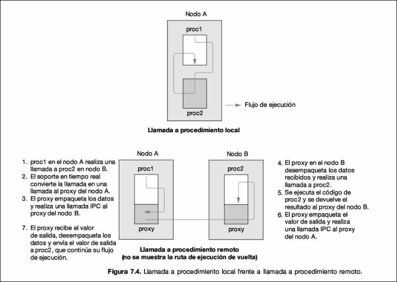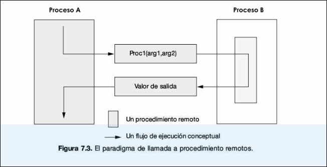 - En RPC, un proceso llama a un procedimiento (función C) en otro proceso
