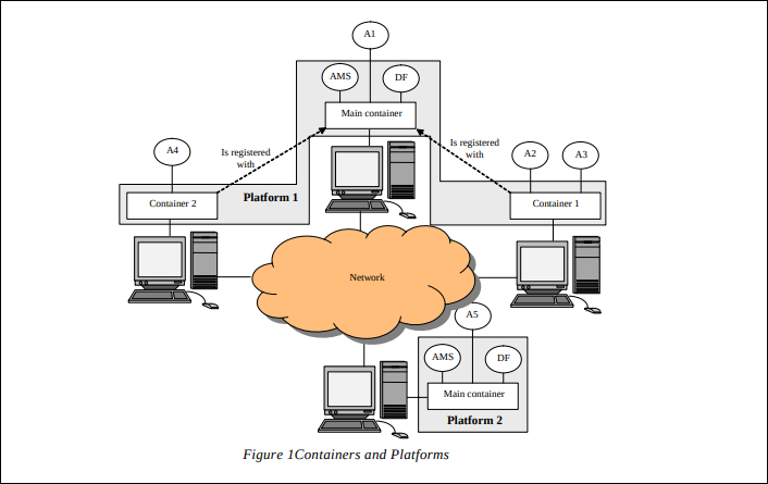 - Si tienes 3 ordenadores conectados formando tu sistema JADE, tienes 1 Plataforma distribuida en 3 Contenedores.
