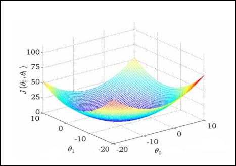 En modelos simples, como el perceptrón, el regresor lineal (tambíen polinómico y multivariable) y el regresor logístico la función de coste es convexa y converge, como en la imagen.