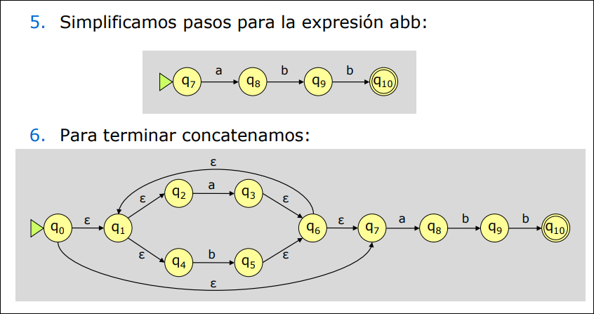 - Para la expresión regular se construye el AFN