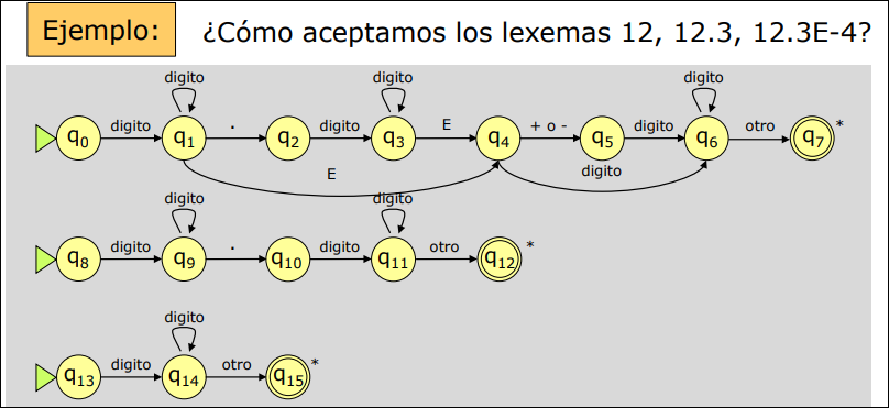 Podemos integrar los tres autómatas anteriores en el siguiente autómata: