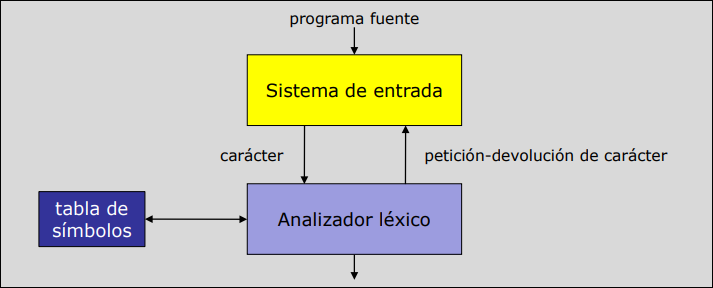 - Productor (Léxico): lee los caracteres necesarios, forma el token y se lo entrega.
