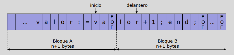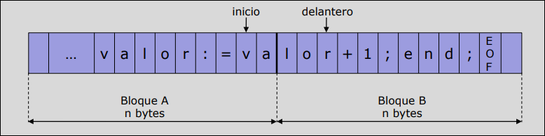 delanterohacia un nuevo bloque, se sobrescribirá la memoria donde se encontraba el punteroinicio, perdiendo el comienzo del lexema antes de ser procesado. -